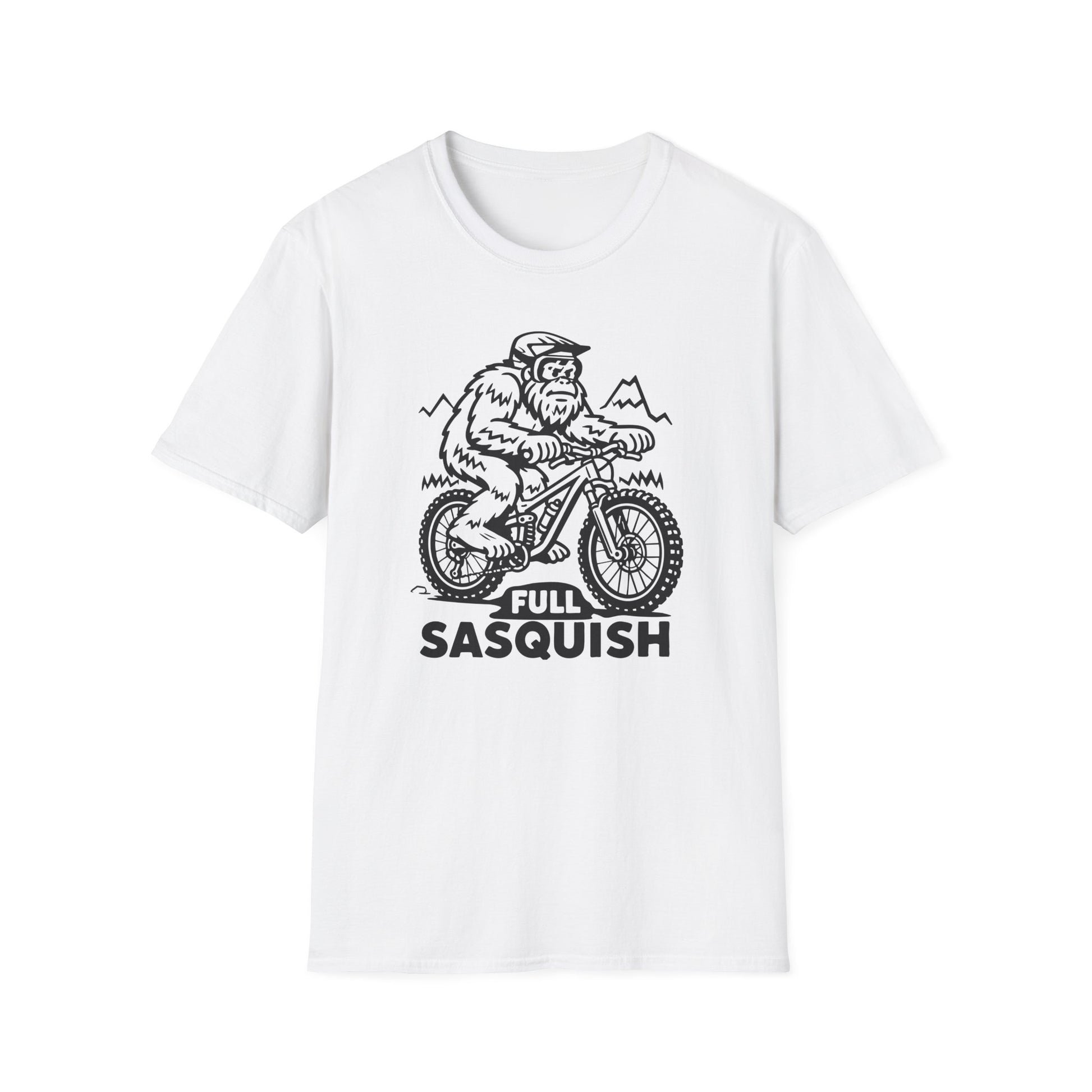 Sasquatch rides full squish no doubt. I mean lot's of chunky miles to cover. Discover the perfect blend of comfort and style with this unisex t-shirt, designed for those who appreciate quality and unique design. Featuring a whimsical Sasquatch graphic, this tee brings a fun atmosphere to your outfit. Ideal for casual outings, adventures, or simply relaxing at home, it fits seamlessly into everyday life. It's a great gift for outdoor enthusiasts, nature lovers, and anyone who enjoys a light-hearted touch to their wardrobe. Perfect for holidays like Halloween or birthdays, this shirt also makes a great addition to your collection for casual gatherings and celebrations.