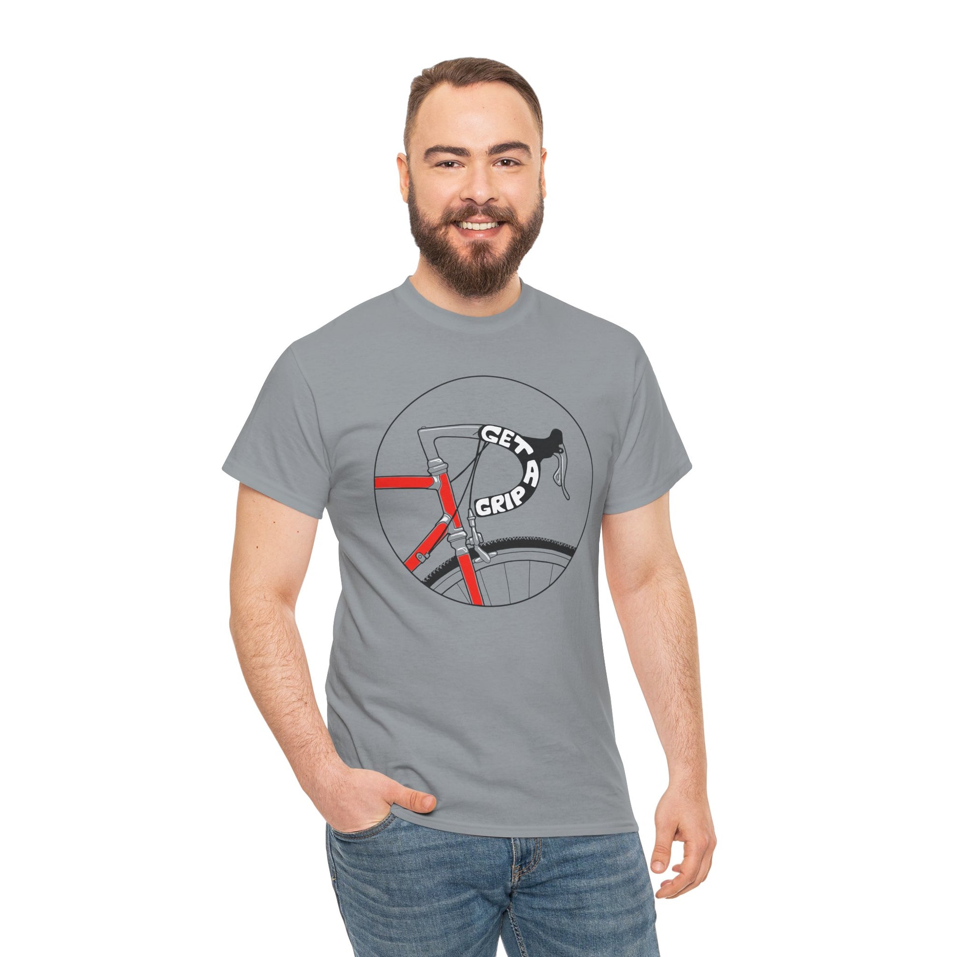 This Unisex Heavy Cotton Tee combines style with comfort, making it the perfect choice for everyday wear. This Tee features a clever design with the encouragement to 'get a grip' cleverly worked into the handlebar design. Its classic fit and crew neckline create a versatile piece that can be dressed up or down for any occasion. Whether you’re cycling, lounging, or meeting friends, this tee offers a relaxed vibe that fits seamlessly into your wardrobe. Ideal for cycling enthusiasts or anyone who appreciates unique graphic designs, this shirt is perfect for casual outings, summer festivals, or as a thoughtful gift for birthdays and holidays like International Bicycle Day. Crafted with sustainability in mind, it not only looks good but feels good, knowing it’s made from ethically sourced materials.